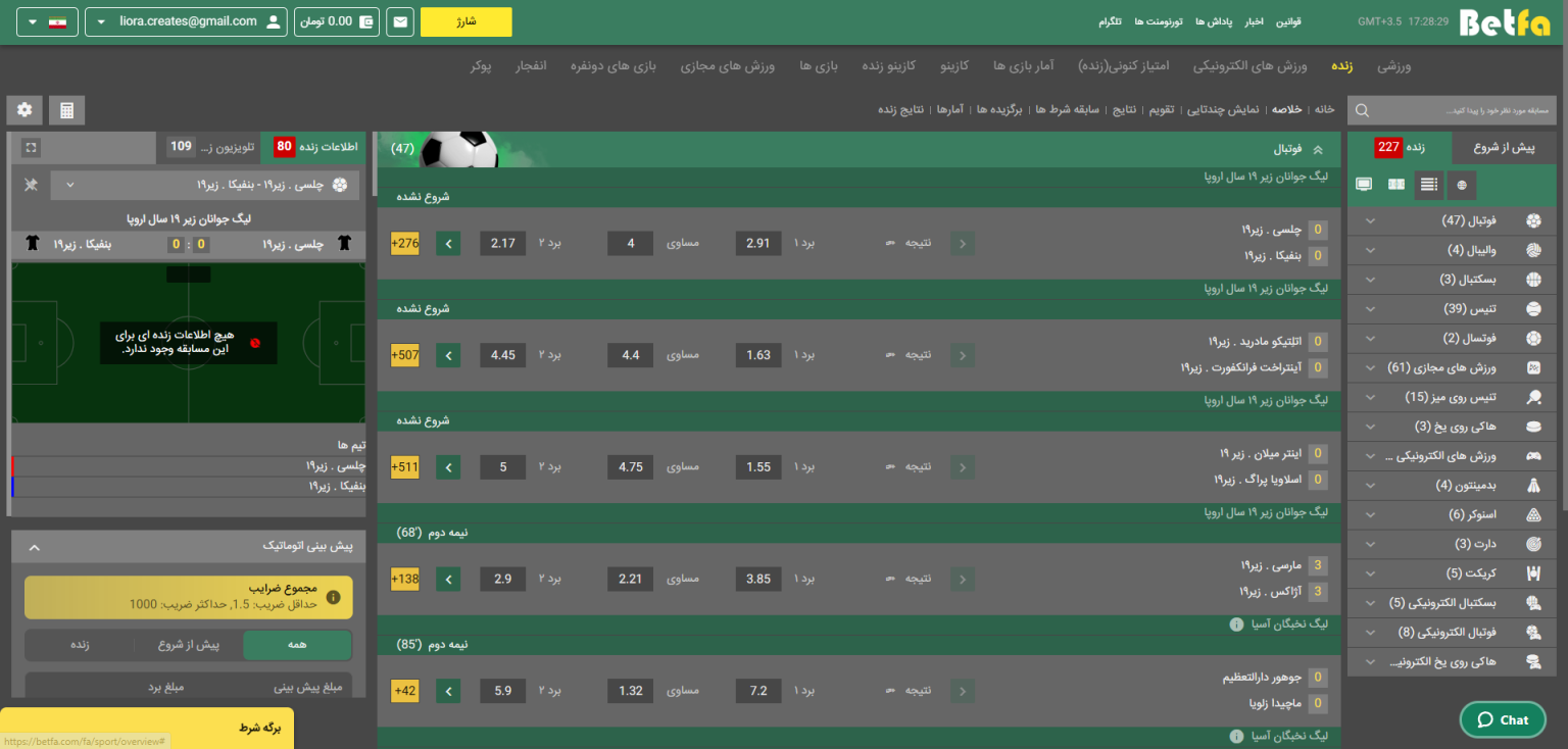 ویژگی جذاب دیگر در بخش پیش بینی بتفا، امکان شرط بندی زنده (Live Betting) است. در این حالت، شما می توانید در جریان مسابقه و با توجه به شرایط واقعی بازی، تصمیم گیری کرده و شرط خود را ثبت کنید.